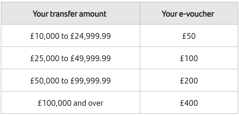 The bank is also offering a bonus cashback e-voucher to customers who transfer £10,000 or more from a non-Santander ISA into a Santander Fixed Rate or Easy Access ISA. The larger the transfer, the higher the value of the voucher, with customers that transfer £100,000 and over into their new ISA being eligible for a £400 e-voucher.2