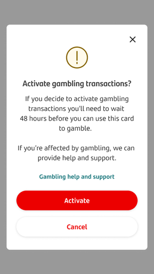- You’ll need to tap on ‘Activate’ to remove the gambling block and you’ll be able to see when the gambling block ends on the ‘Card controls’ screen.