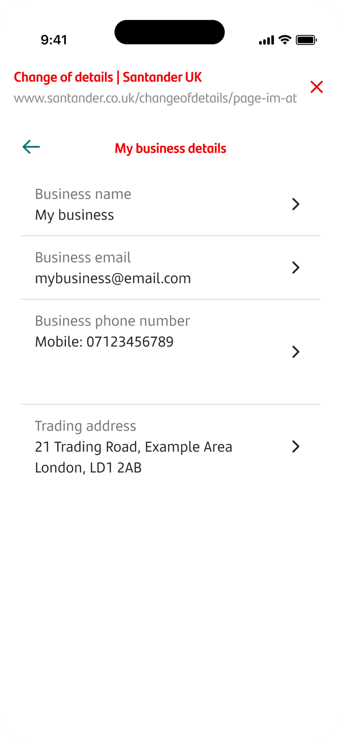 - Tap ‘My business details’.