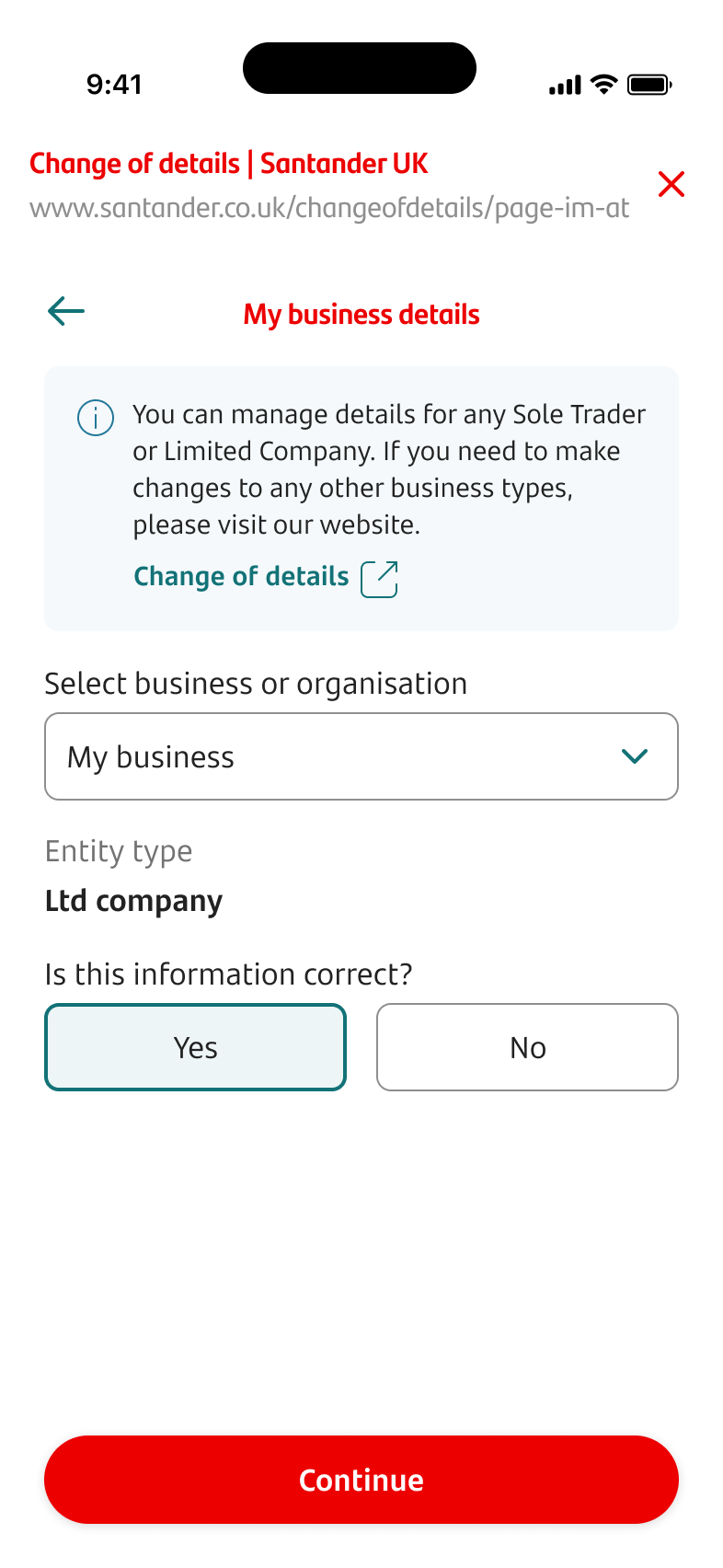 - Confirm that you have the correct business by tapping ‘Yes’, then tap ‘Continue’.
