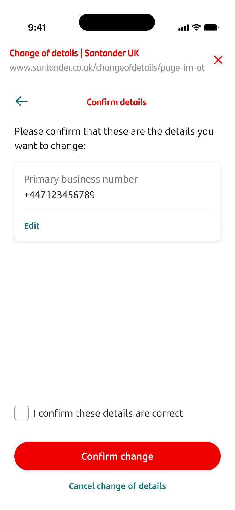 If this is correct, you can tick the box to confirm this before tapping ‘Confirm change’.
