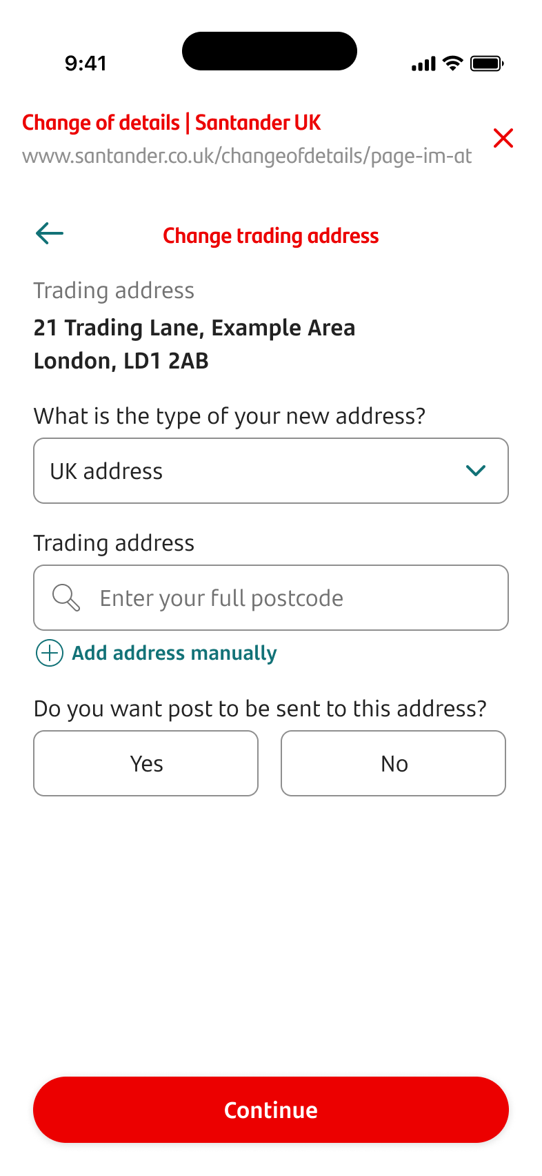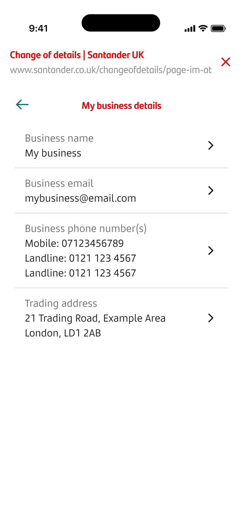 - If you tapped on your business trading address in ‘My business details’, you’ll start the process to change your business trading address.