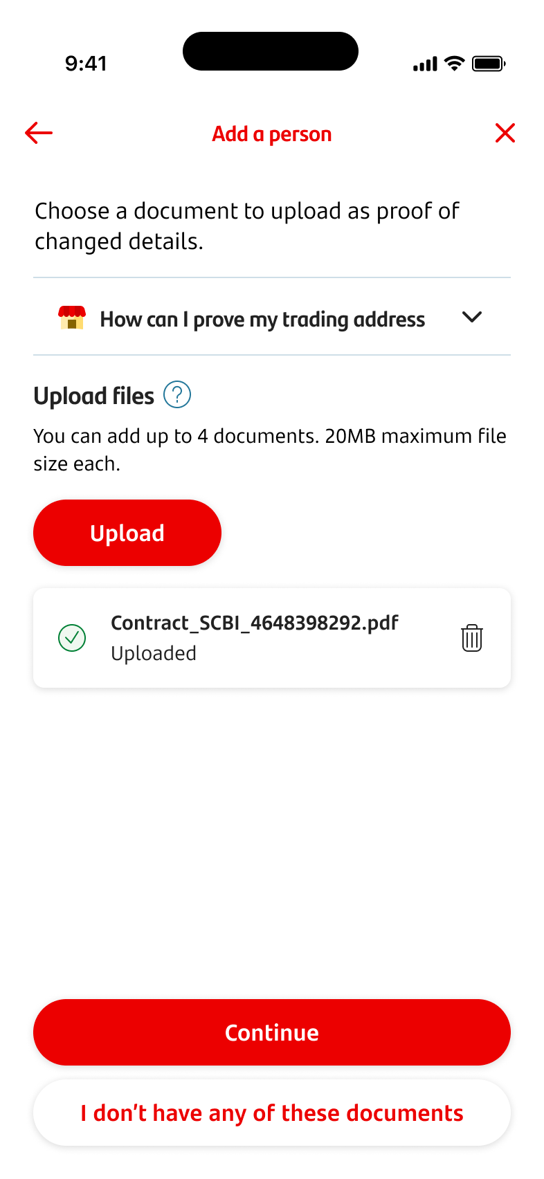 - You can then tap ‘continue to document upload’.