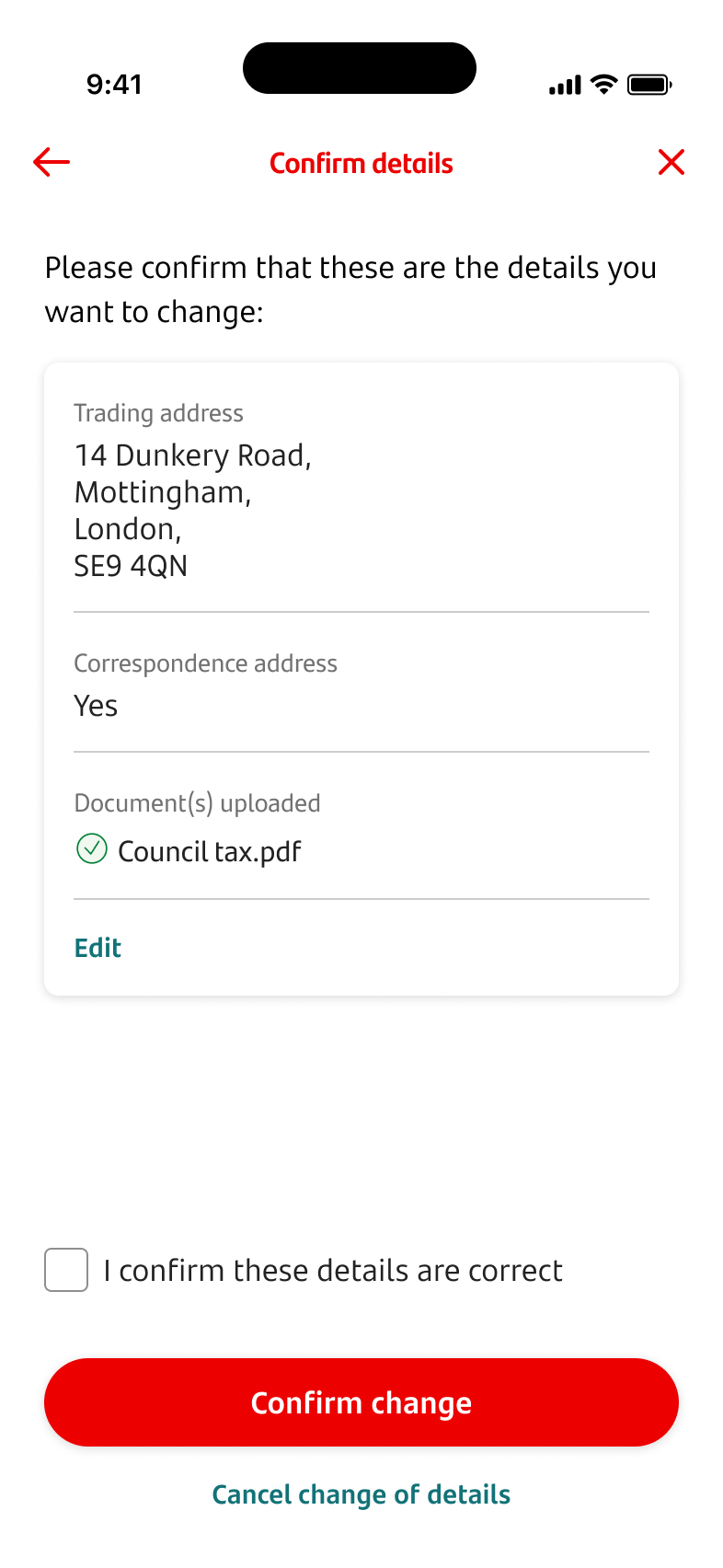 - If these details are correct, you can tick the box to confirm this before tapping ‘Confirm change’.