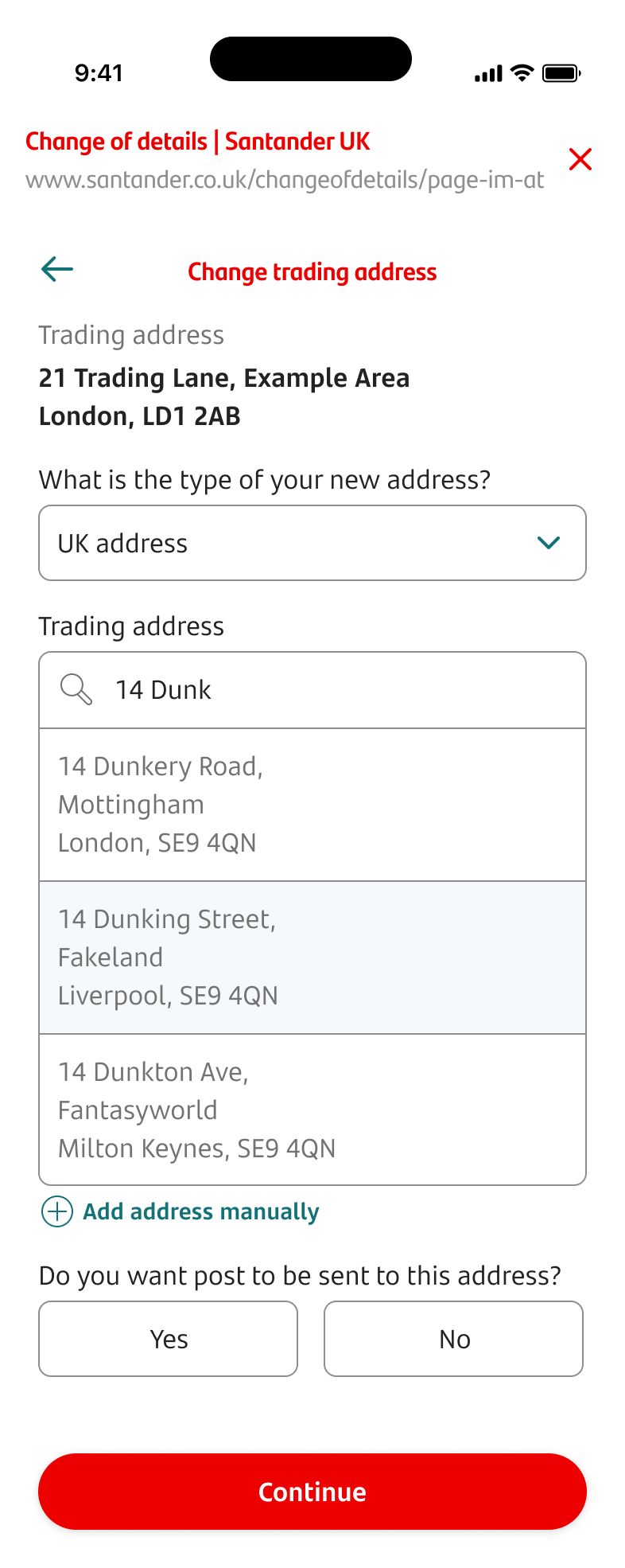 Any change to your business trading address will only apply to accounts for this business. For other businesses, you’ll need to start again and select the other business.