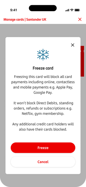 • To unfreeze your card, repeat the same journey by tapping on ‘Unfreeze card’.