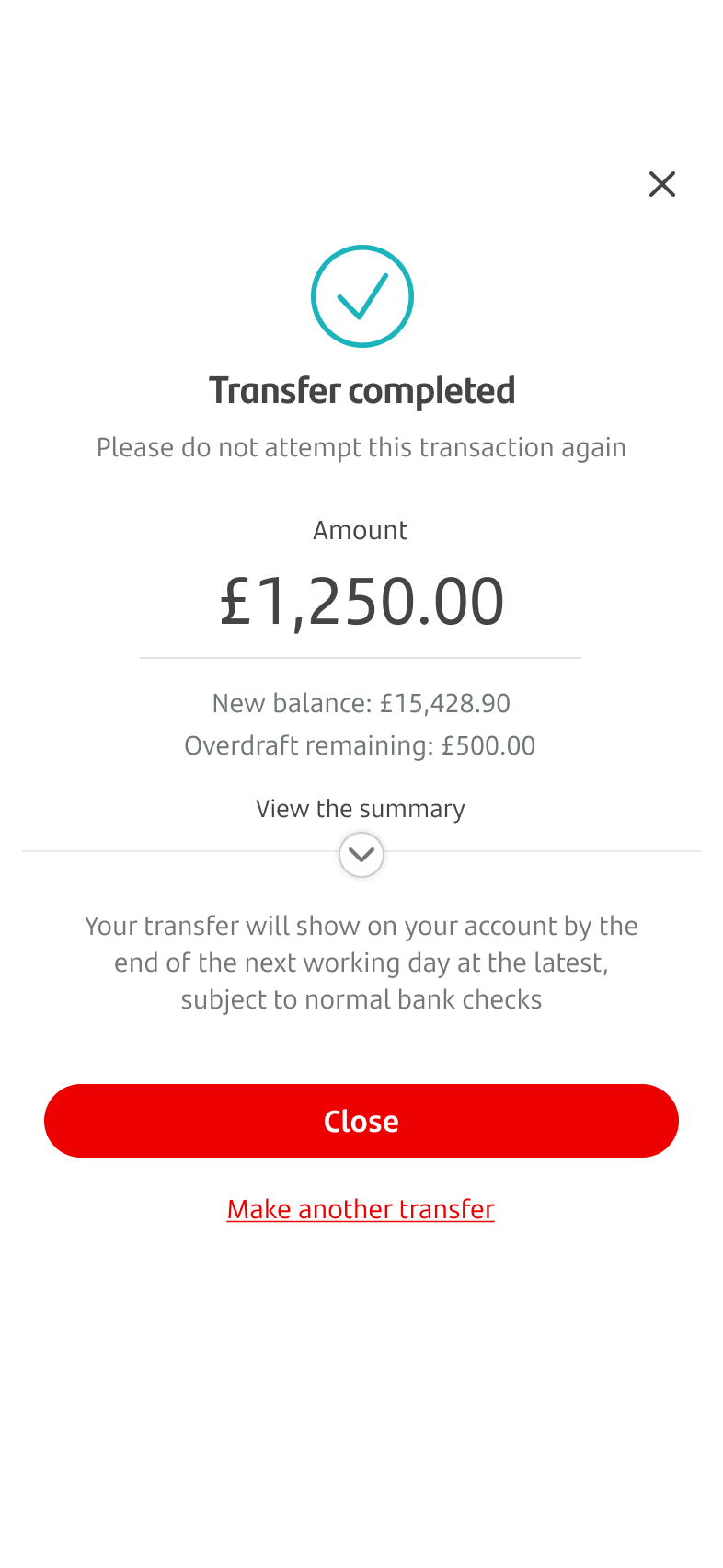 • The transfer has been successful.
