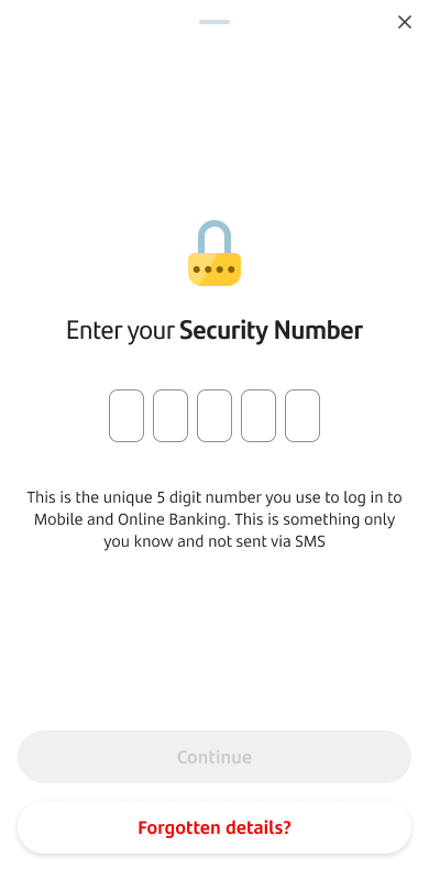 • If you can't remember your Security Number, you can tap 'Forgotten details?’
