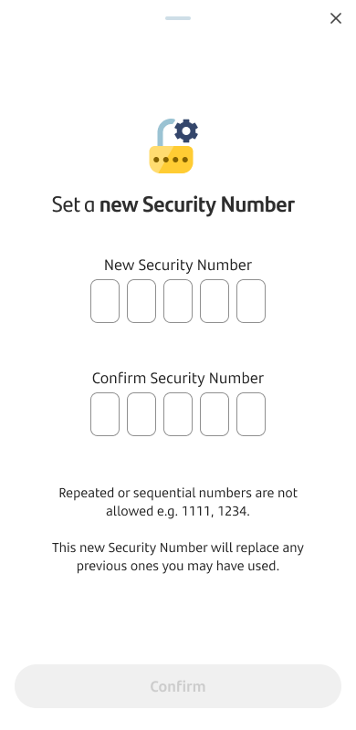 • After a final security check, you'll then be asked to create a new Security Number. Please keep this safe.