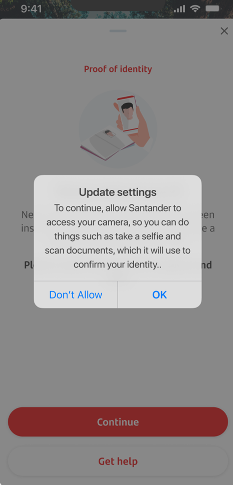 You might be prompted to allow us to access your camera. We'll need this so you can take a picture of your ID with your mobile device.