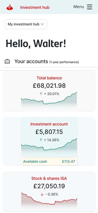 At the top of your screen, you'll always see the total value of your investments together with how much they have increased or decreased over time.