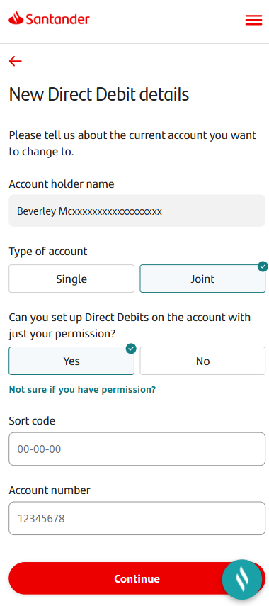 You can then provide the details of the account you want the Direct Debit to come from.