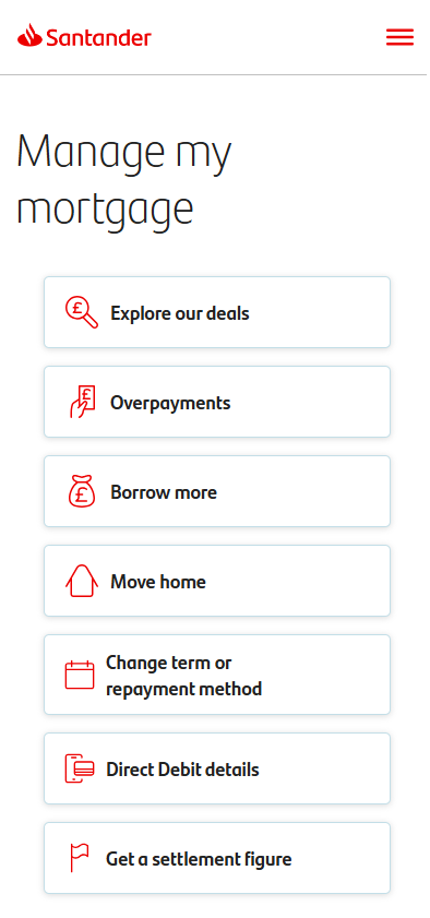 If you have a Santander mortgage, you can find out more information about it by tapping on your mortgage product on the home screen.