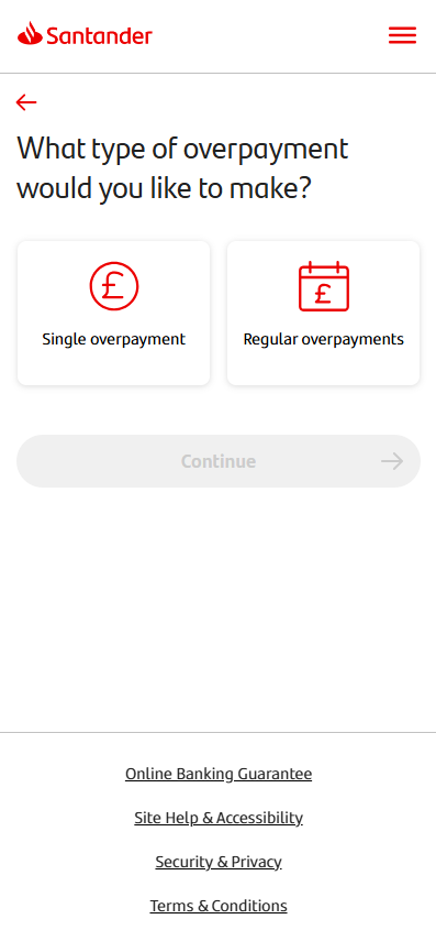 Let’s take a look at overpayments. If you tap ‘Overpayments’ in the Manage my mortgage menu, you’ll be able to choose which type you’d like to make.
