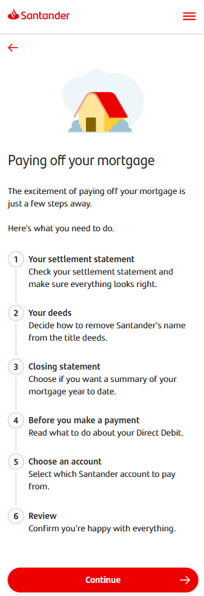 You’ll see a screen which breaks down all the steps you need to go through to pay off your mortgage. The app will guide you through all these steps.