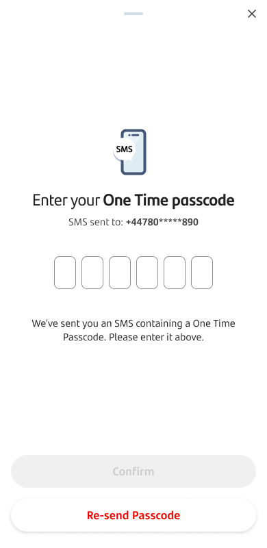We may send you an SMS with a One Time Passcode (OTP). You’ll need to enter this to continue.