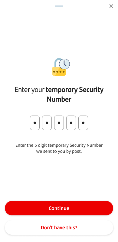 You’ll then be asked to enter your temporary Security Number, which would have been sent to you by post.