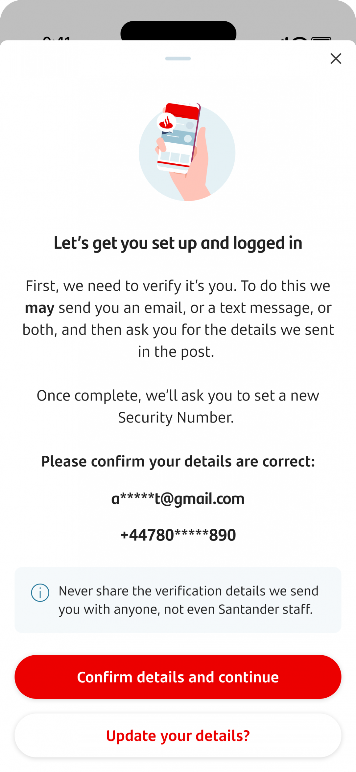 Once you have checked your details and everything is correct, tap on 'Confirm'. If you need to update your details, tap on 'Update details'.