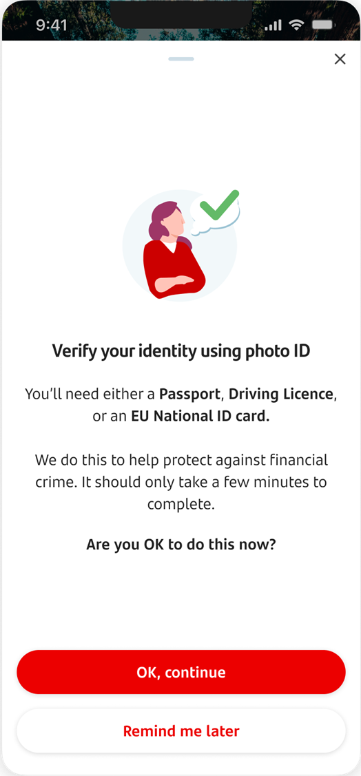 You'll be asked to confirm your identity using your passport or another form of photo ID. If you can’t do this right now, we’ll authenticate you using other methods.